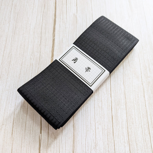 Traditional Kaku Obi Belt + Inner Belt - Simple Black