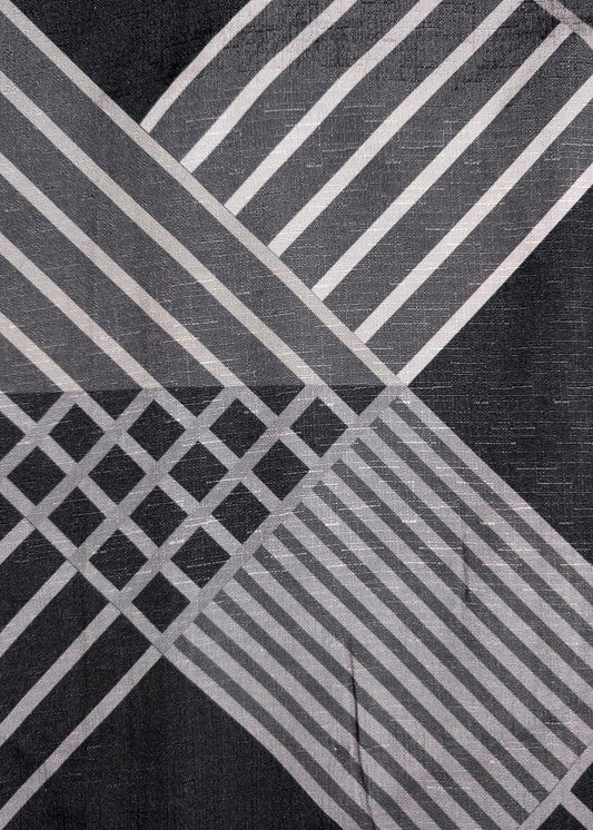 Men's Yukata (L) - Line Patterns in Charcoal (Style #L0009)