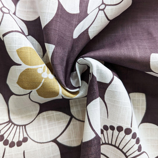 Yukata Kimono - White Flowers in Brown (Style #2600)
