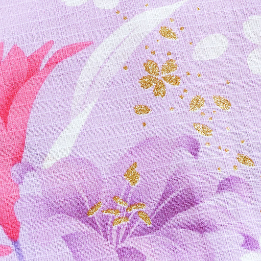 Yukata Kimono - Pink and Red Lilies in Light Purple (Style #2591)