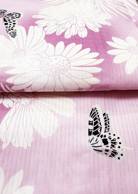 Yukata Kimono - Butterflies and Flowers in Purple Pink (Style #2670)