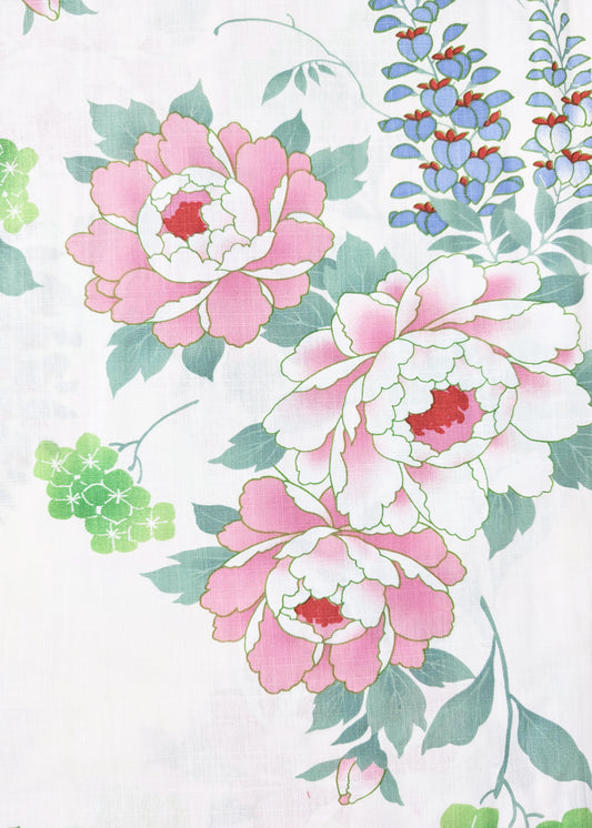 Yukata Kimono EXTRA Plus Size - Flowers in White (Style #1009)