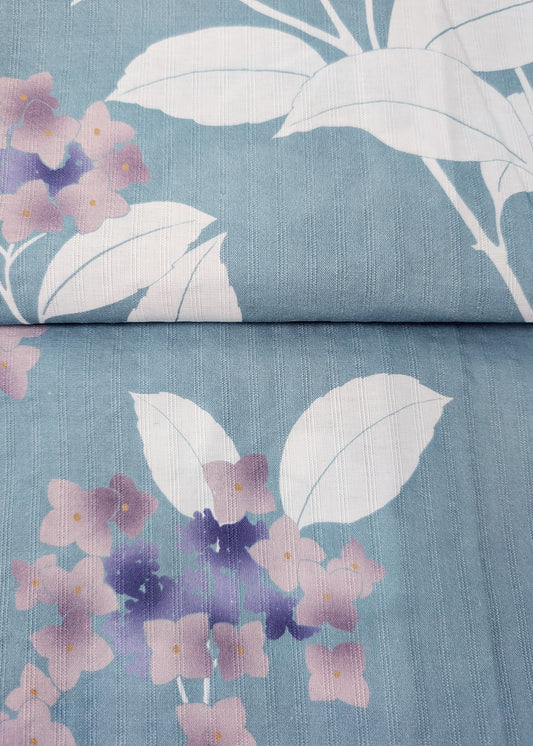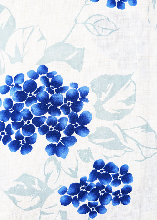 Yukata Kimono - Blue Hydrangeas in Off White (Style #2655)