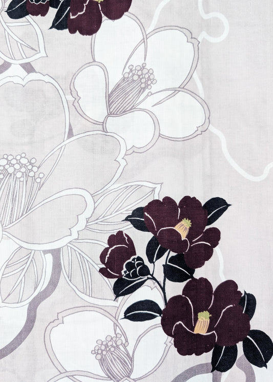 Yukata Kimono - Maroon Camellias in Gray (Style #2661)