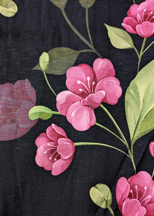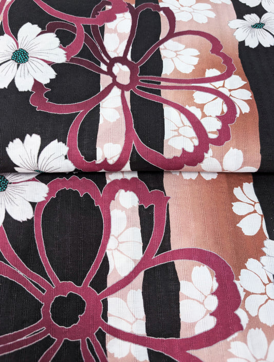 Yukata Kimono EXTRA Plus Size - Red Flowers in Black (Style #1010)