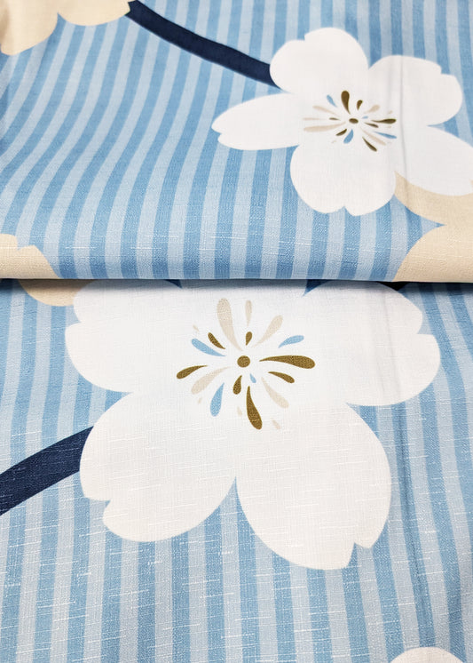 Yukata Kimono EXTRA Plus Size - Cherry Blossoms in Striped Blue (Style #1011)