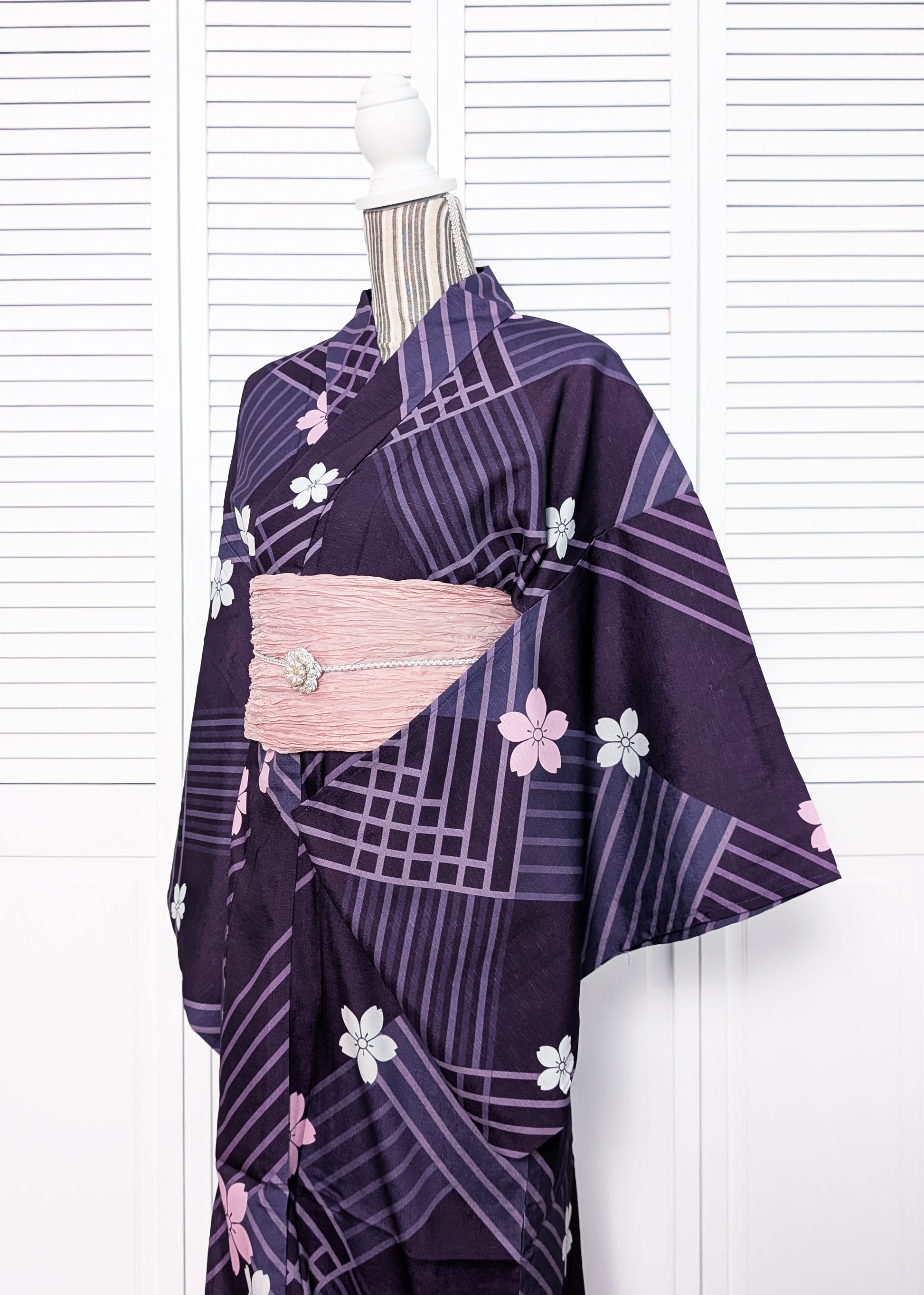 Couples' Yukata Kimono - Cherry Blossom Geometrics (Style #C1000)