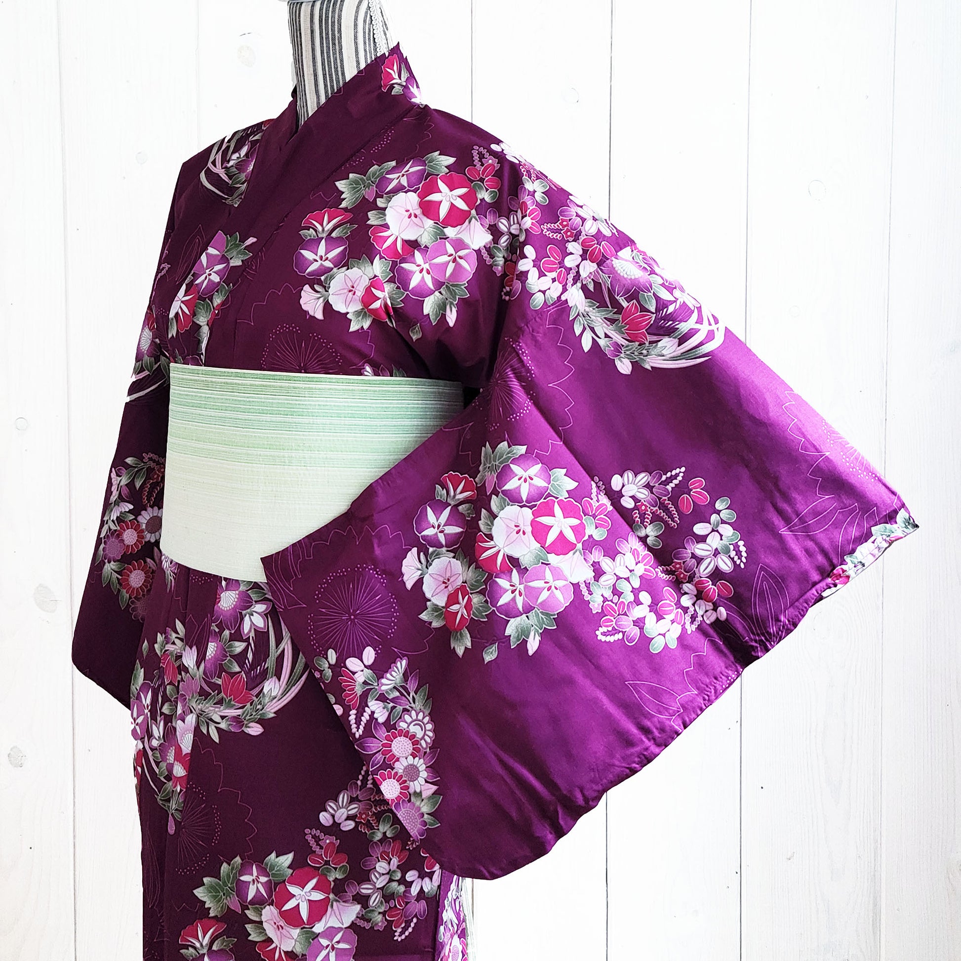 This Hanhaba obi belt features one side in gradient yellow and green combination, and another side in pastel yellow.