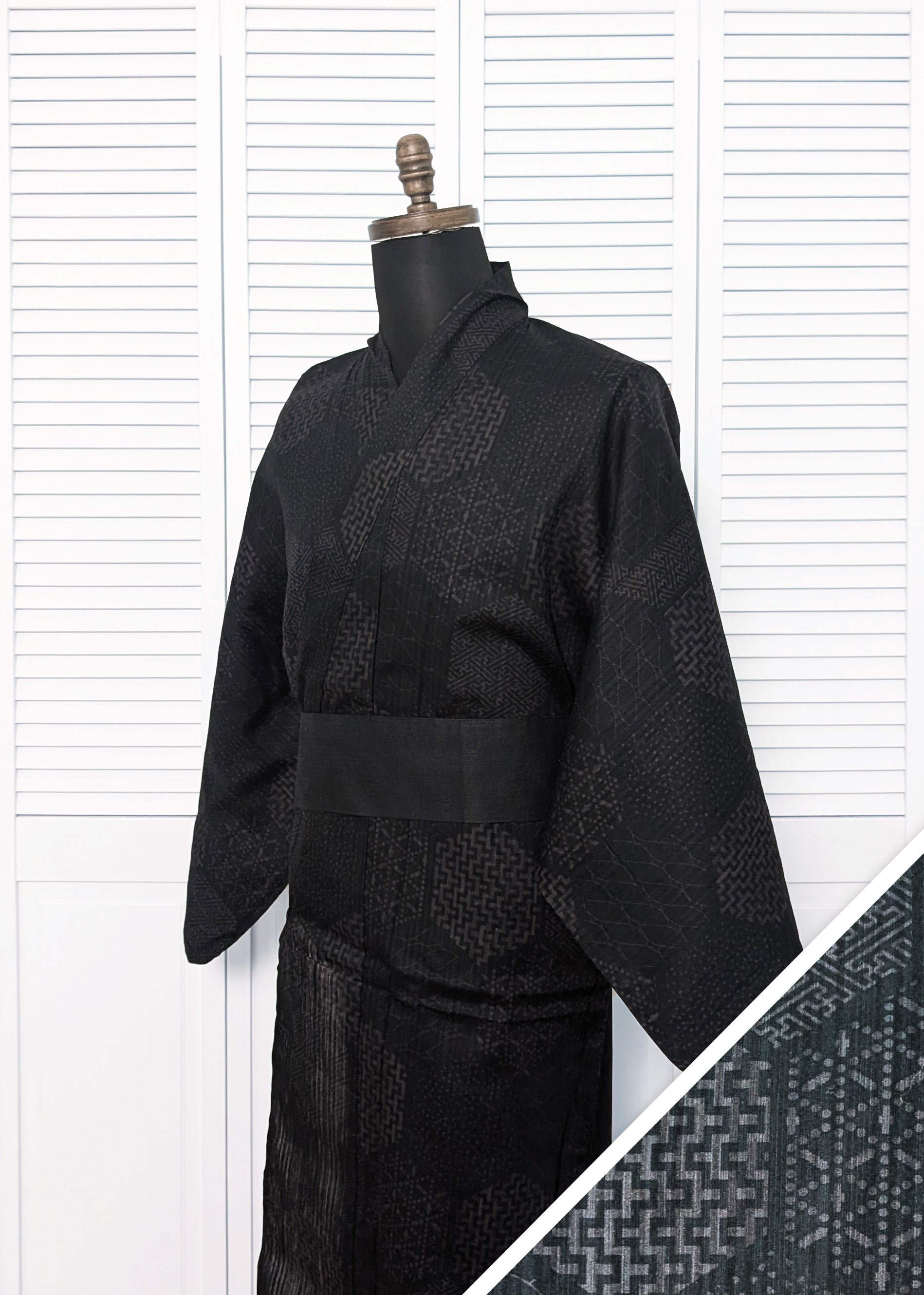 Men's Yukata (M) - Hexagons in Black (Style #M0001)